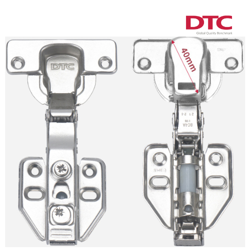 Bản lề DTC giảm chấn thẳng phi 40mm, dùng cho cánh tủ trùm toàn phần. Phi 40mm dành cho ván tủ dày 20mm - 40mm