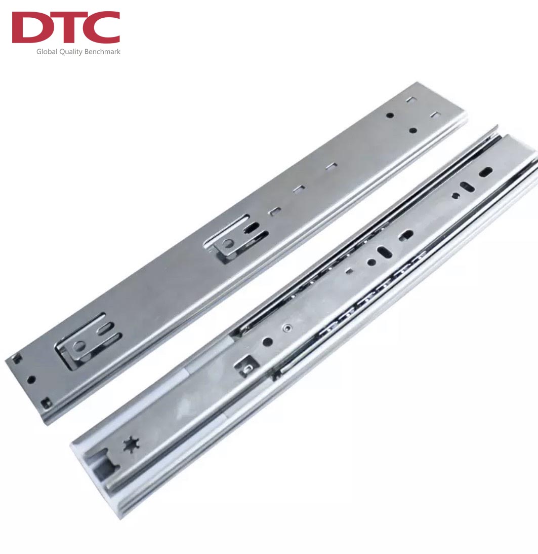 Ray trượt bi 3 tầng giảm chấn DTC 250 / 300 / 350 / 400 / 450 / 500 có độ dày 1.2 x 1.2 x 1.5 mm, độ bền cao có test đóng bật mở 50.000 lần