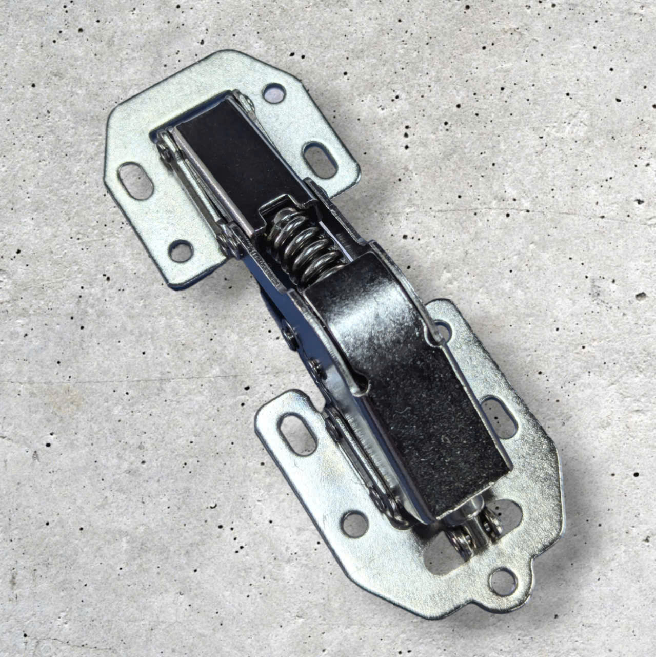Bản lề gỉảm chấn 90 độ là một phụ kiện kết hợp giữa bản lề bật thông thường và bộ giảm chấn.